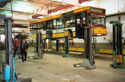 Als erstes muss ein Bus auf eine gewisse Höhe gehoben