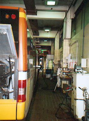 Bevor ein Bus schlafen gehen darf, wird er noch aufgetankt. |